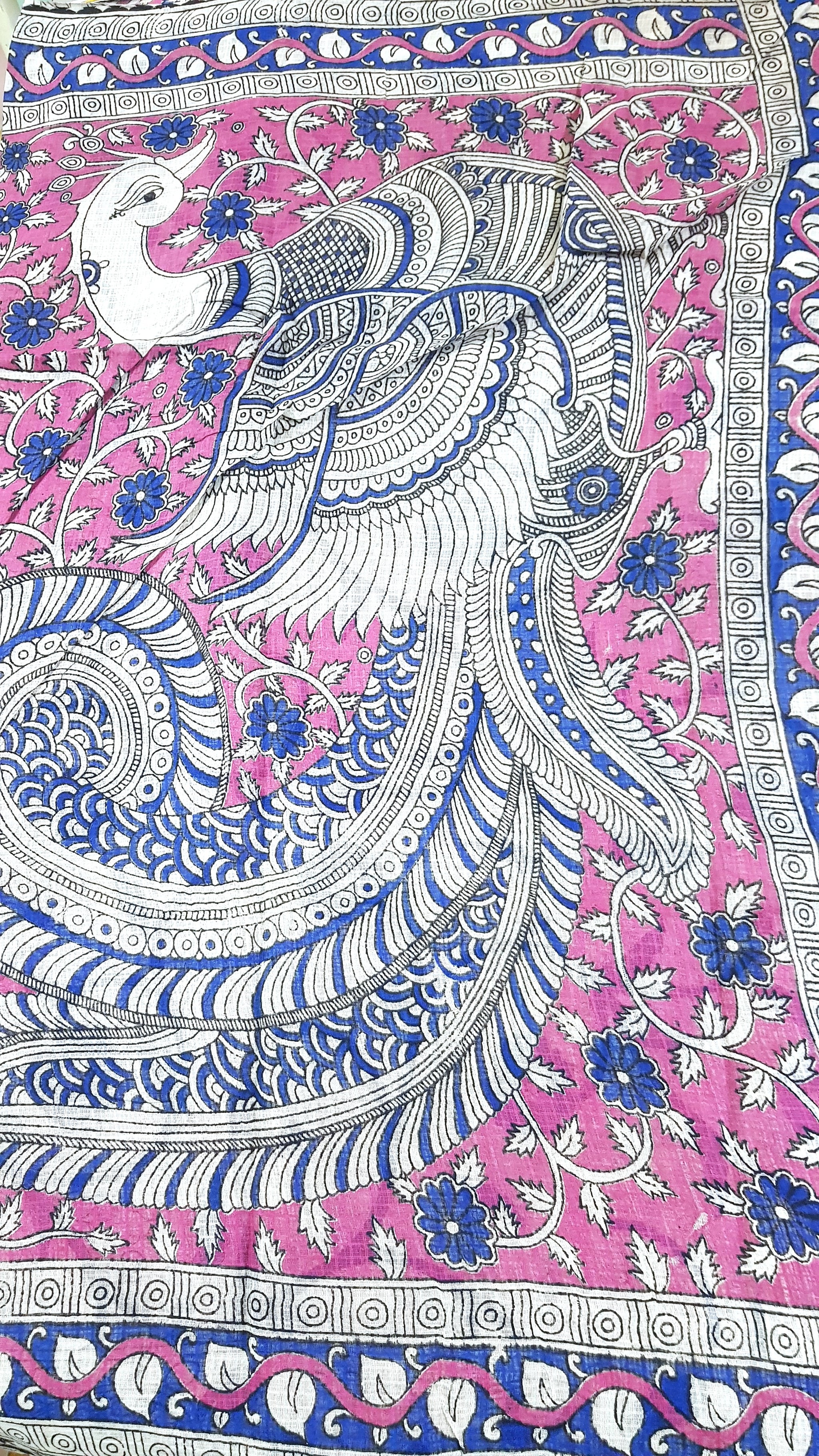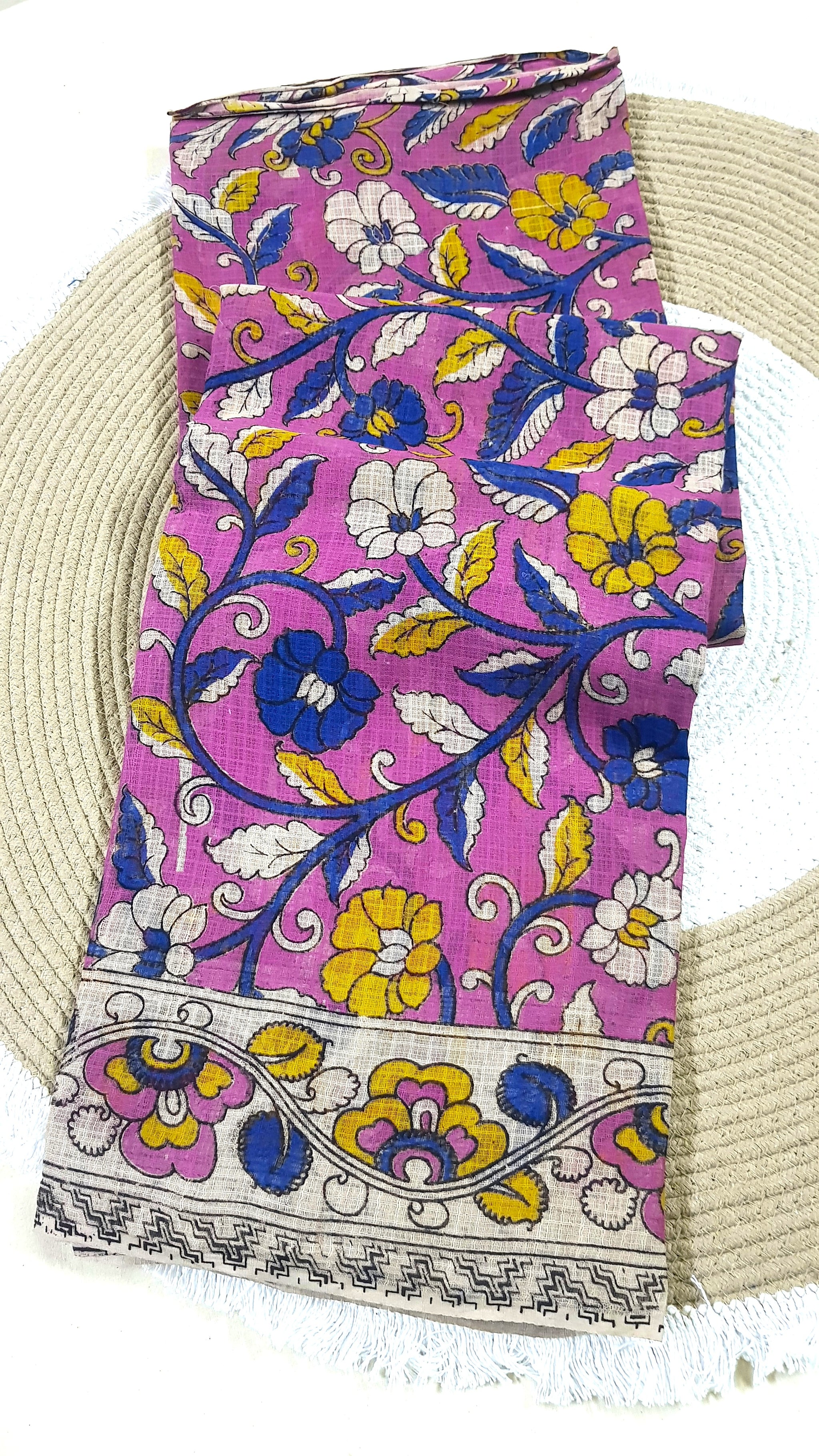 🌸 Kalamkari Kota Cotton Saree – Pure Handcrafted Elegance