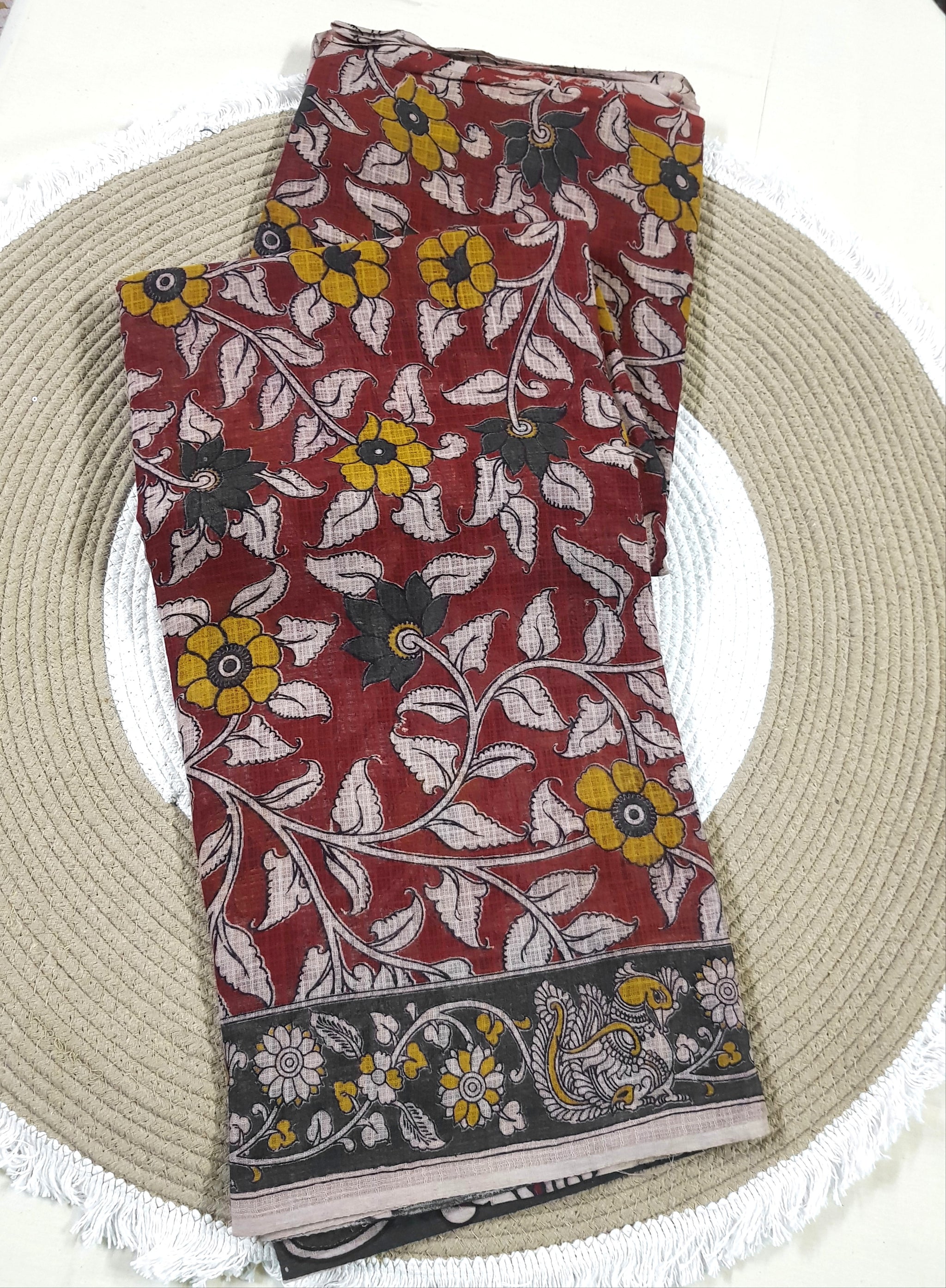 🌸 Kalamkari Kota Cotton Saree – Pure Handcrafted Elegance