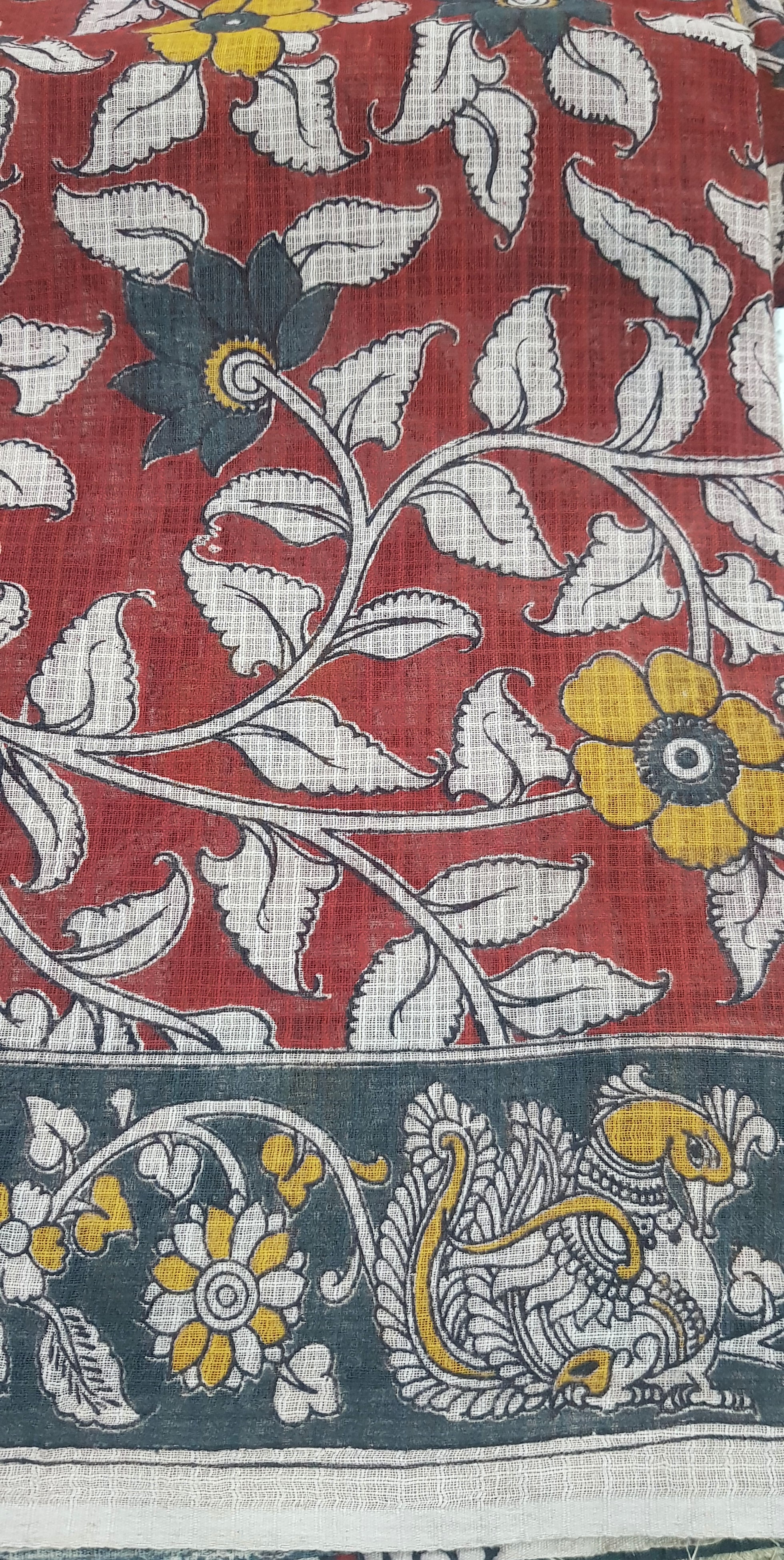 🦚 Pallu: Features an exquisite Kalamkari peacock motif, adding a regal and artistic touch.